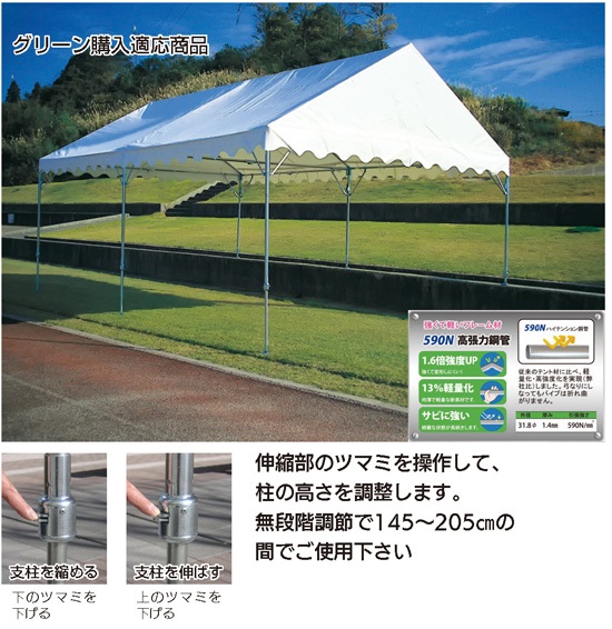 パイプ=スチール590N高張力鋼管31.8φ×1.4mm ・亜鉛メッキ仕上げ 軒高2m